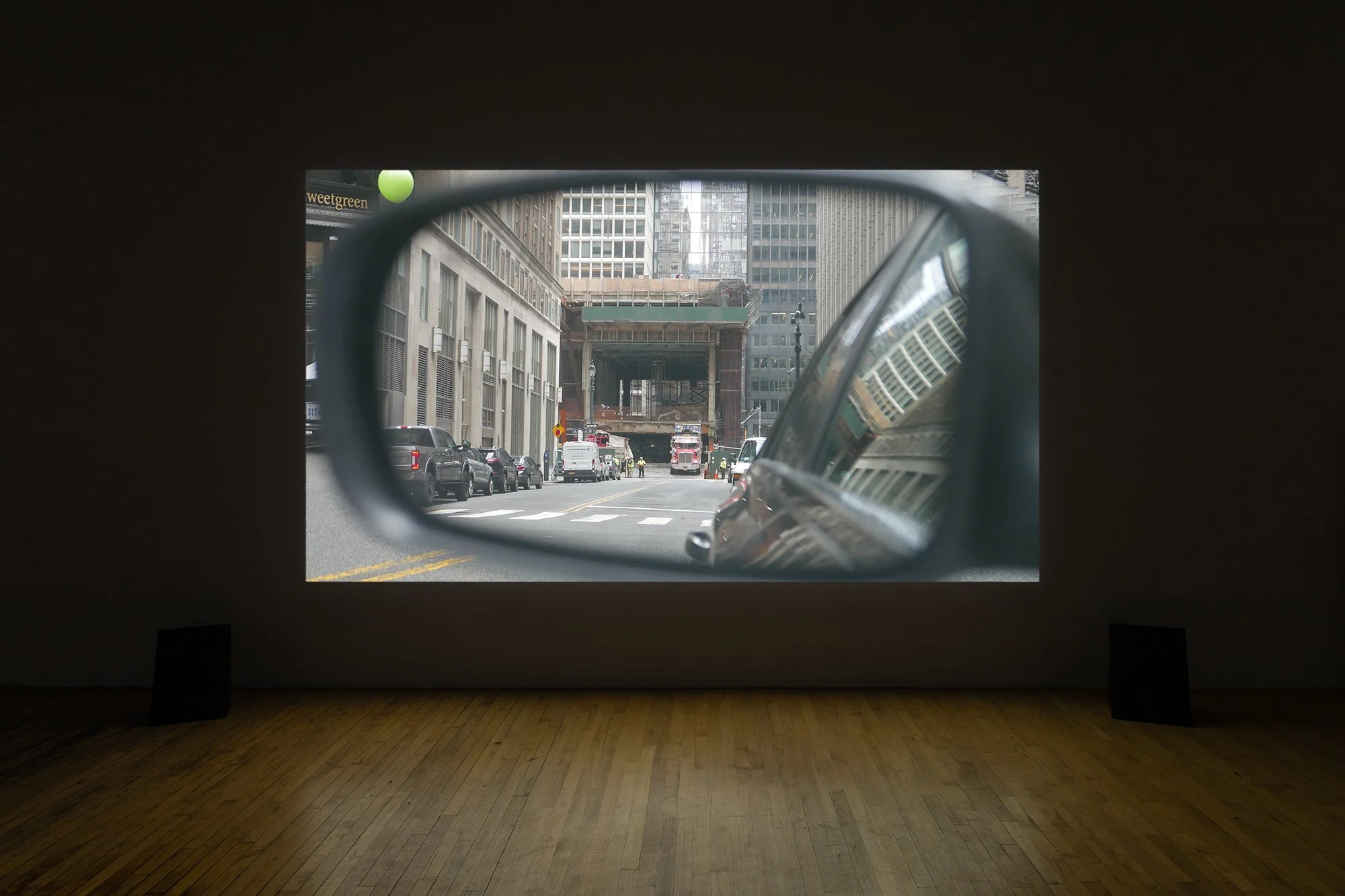 Five miles uptown, Noah Barker & Dora Budor’s “psycho-geographical dérive” and quasi surveillance operation tracks the disposal of debris from the demolition of the Union Carbide Building to a recycling facility in New Jersey. At the time of its razing in 2019, it was both the tallest building in the city designed by a female architect, and the largest intentionally demolished skyscraper in the world. The tower was unbuilt to make room for the simultaneous construction of 270 Park Avenue, the new global headquarters for JPMorgan Chase. This was an inaugural project following Bill de Blasio’s rezoning of East Midtown, which allowed for the unrestricted sale and exchange of air rights between the neighborhood’s 57 blocks.